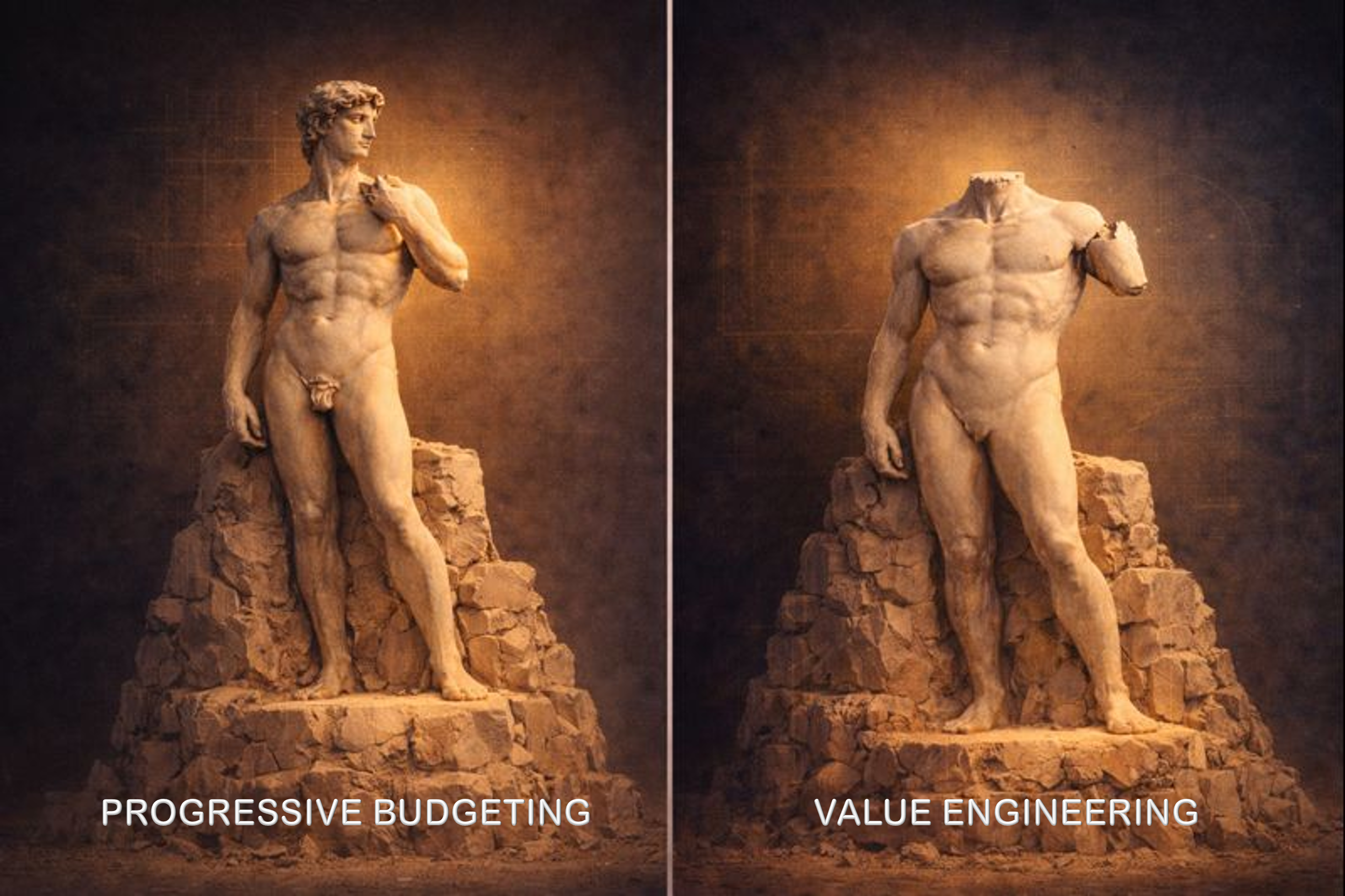 Insights Science versus Art The Two Sides of a Cost Plan Early Engagement Haze Managing Client Expectations Coming Soon Progressive Budgeting Shape The Solution Early, Not Cut It Late Coming Soon